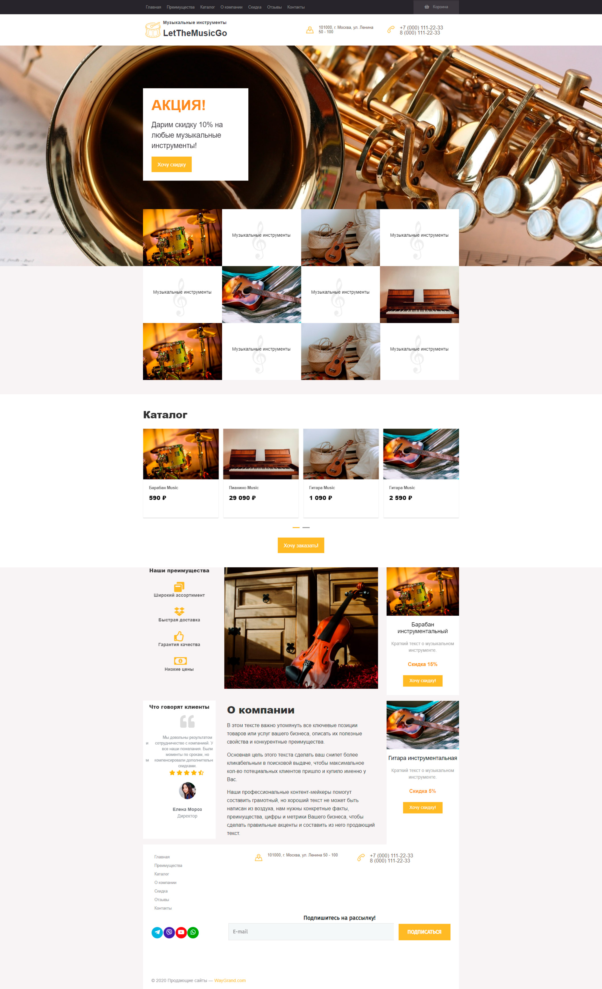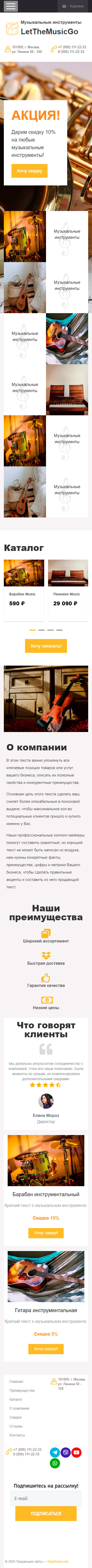 Закажите готовый продающий сайт лендинг #0710201 в Магнитогорске за 1-3 дня «под ключ»: свёрстан, отрисован и готов к рекламе. Тематика шаблона «Музыкальные инструменты».