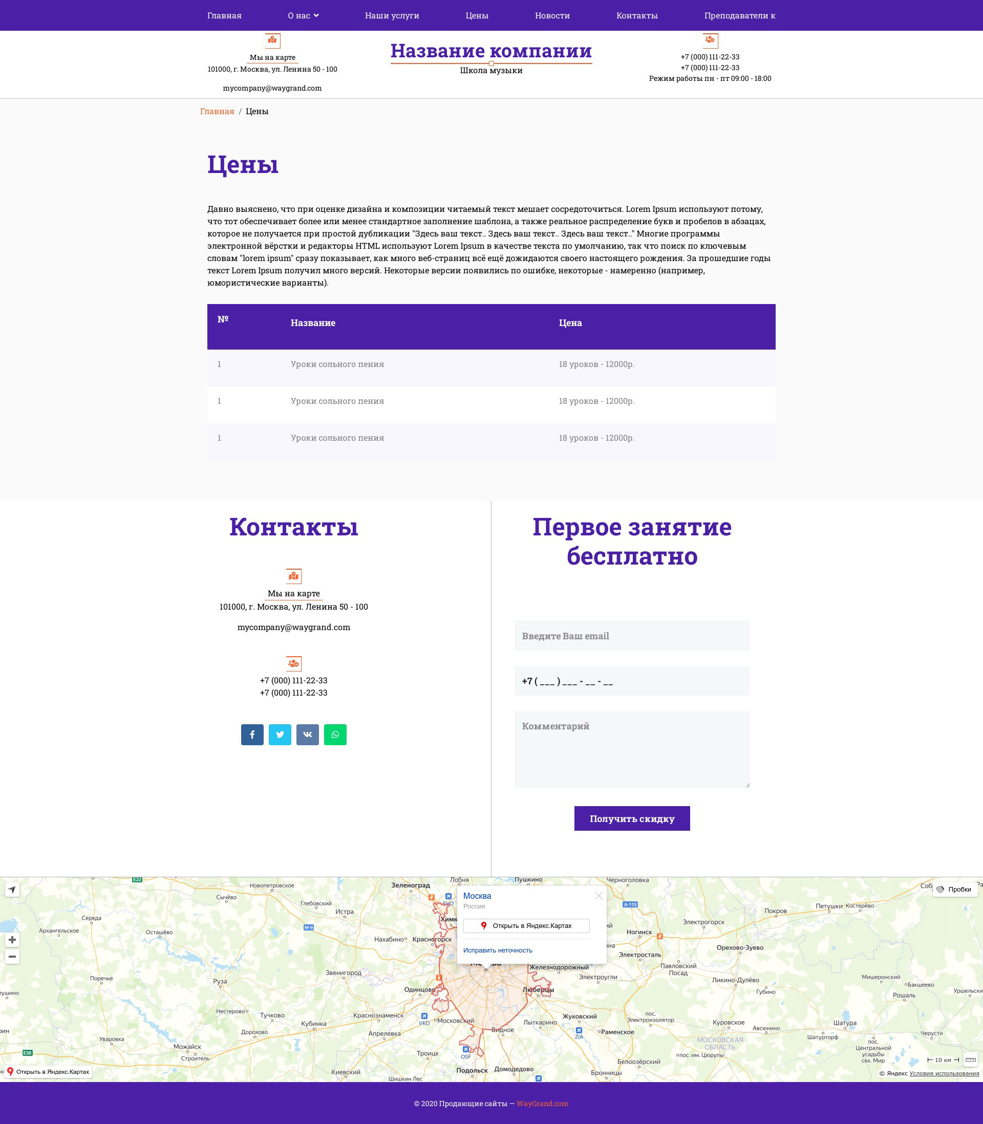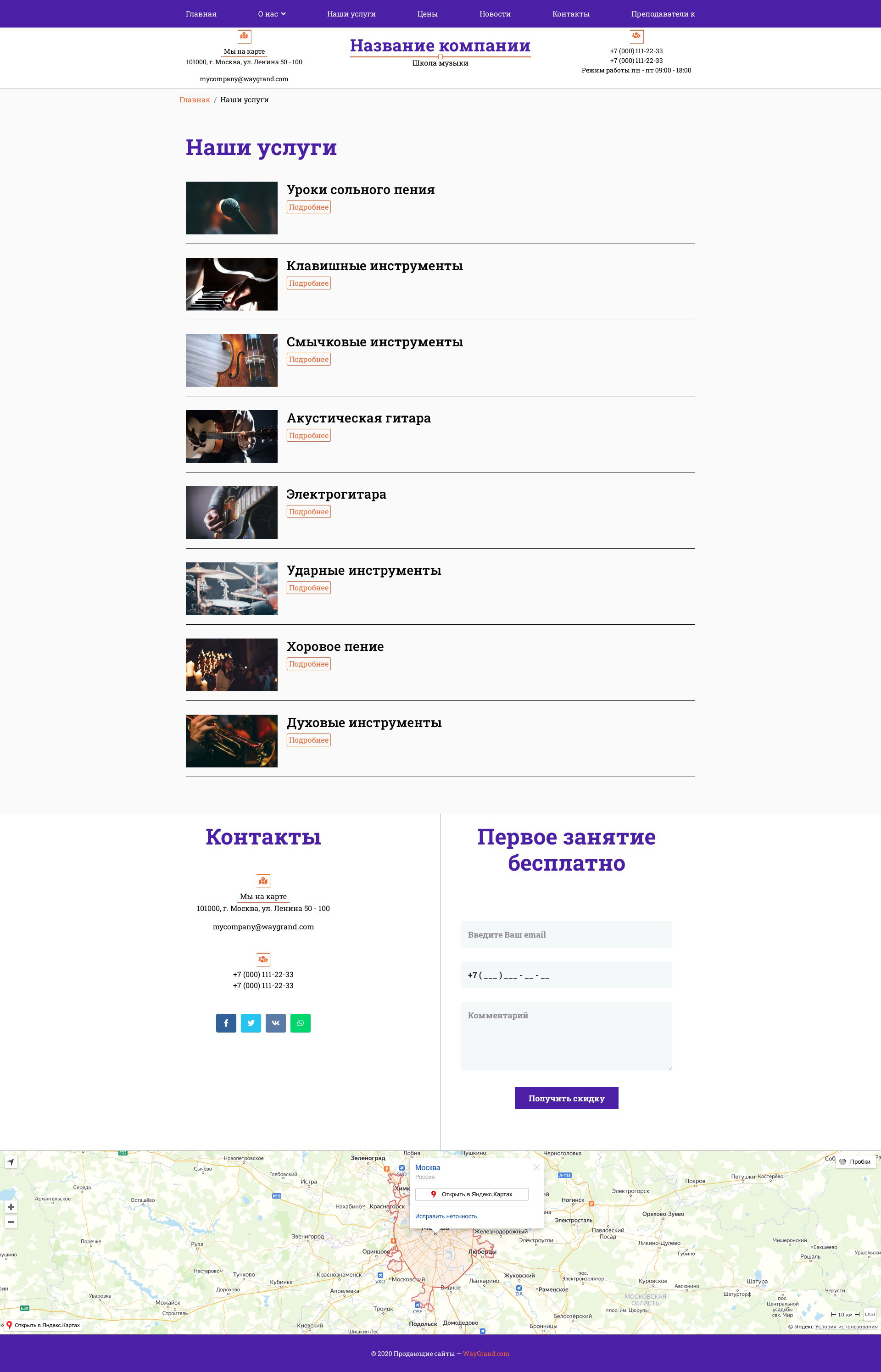 Закажите готовый продающий сайт визитка #1431301 в Магнитогорске за 5-7 дня «под ключ»: свёрстан, отрисован и готов к рекламе. Тематика шаблона «Школа музыки».