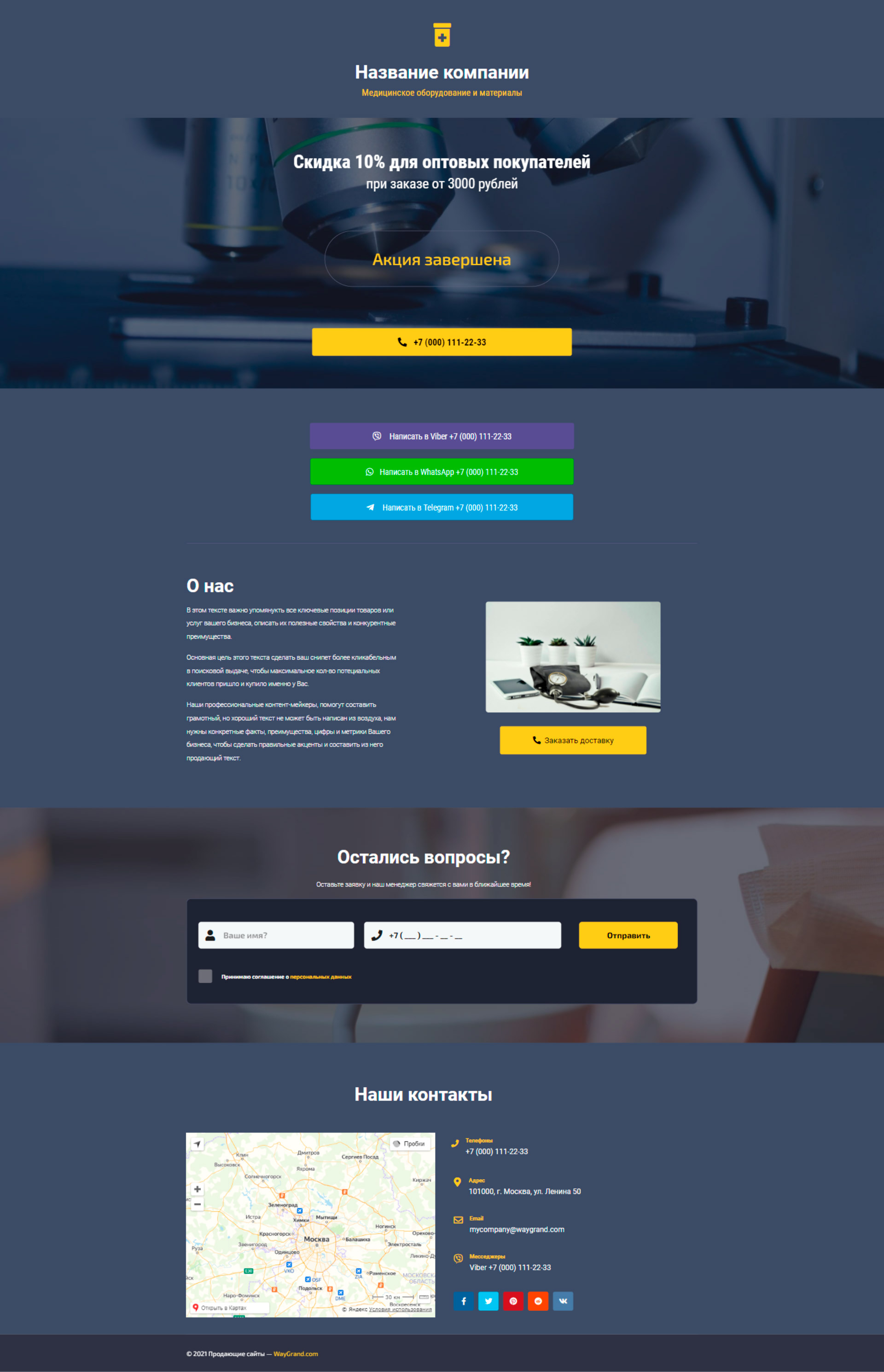 Закажите готовый продающий сайт визитка #1027101 в Магнитогорске за 5-7 дня «под ключ»: свёрстан, отрисован и готов к рекламе. Тематика шаблона «Медицинское оборудование и материалы».
