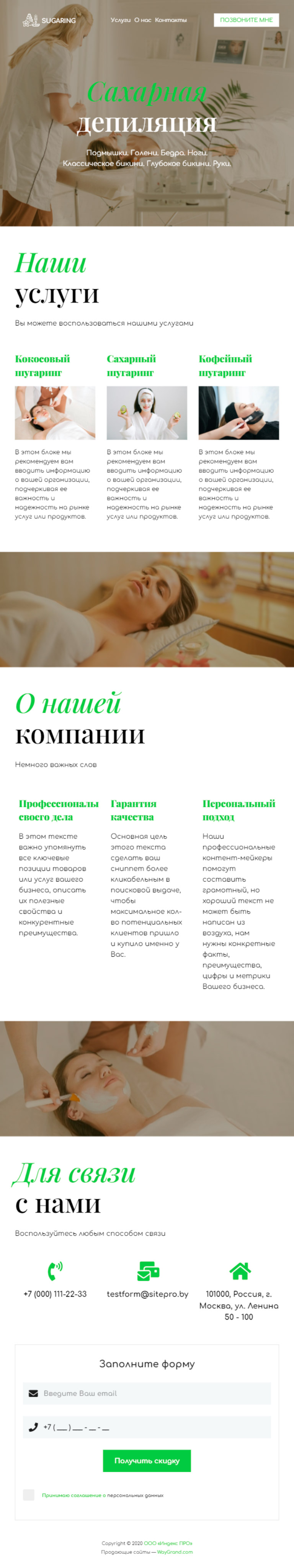 Закажите готовый продающий сайт визитка #1105101 в Магнитогорске за 5-7 дня «под ключ»: свёрстан, отрисован и готов к рекламе. Тематика шаблона «Сахарная депиляция/Шугаринг».