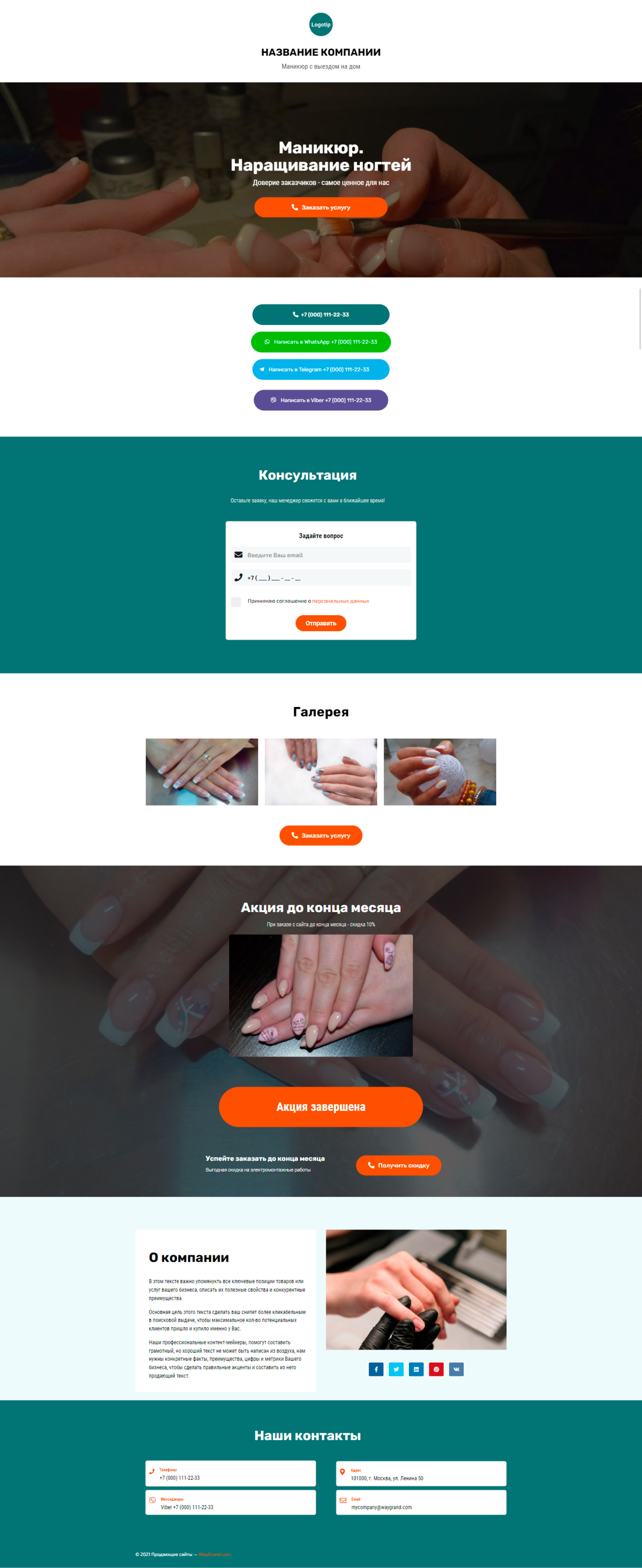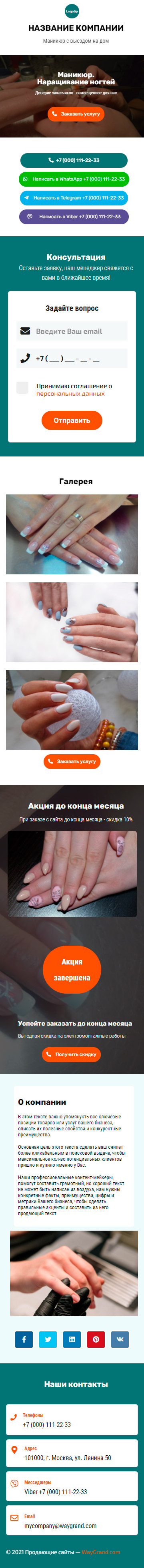 Закажите готовый продающий сайт визитка #1107101 в Магнитогорске за 5-7 дня «под ключ»: свёрстан, отрисован и готов к рекламе. Тематика шаблона «Маникюр. Наращивание ногтей».