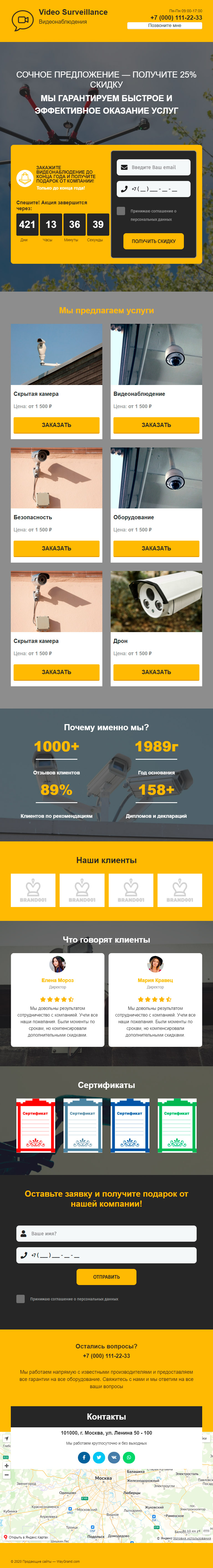 Закажите готовый продающий сайт лендинг #1609202 в Магнитогорске за 1-3 дня «под ключ»: свёрстан, отрисован и готов к рекламе. Тематика шаблона «Видеонаблюдение».