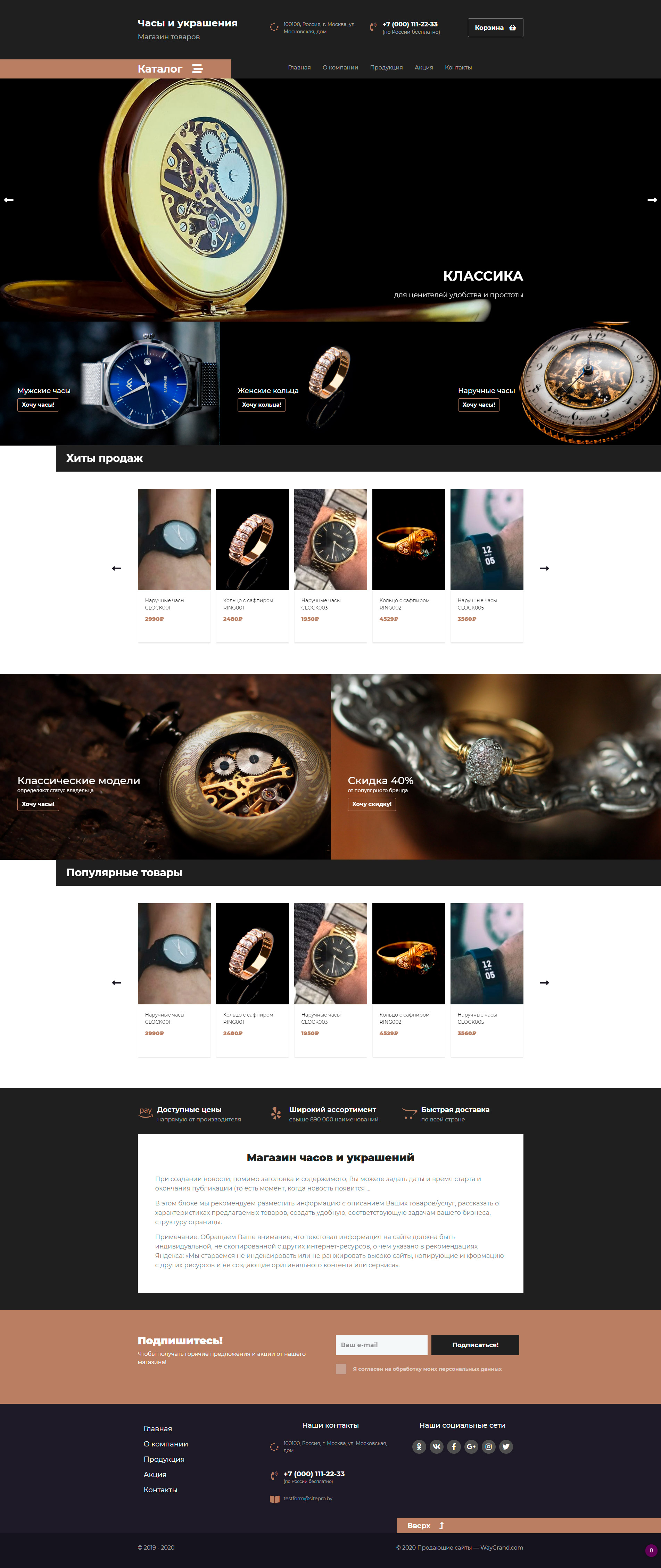 Закажите готовый продающий сайт лендинг #2437201 в Магнитогорске за 1-3 дня «под ключ»: свёрстан, отрисован и готов к рекламе. Тематика шаблона «Часы и украшения».