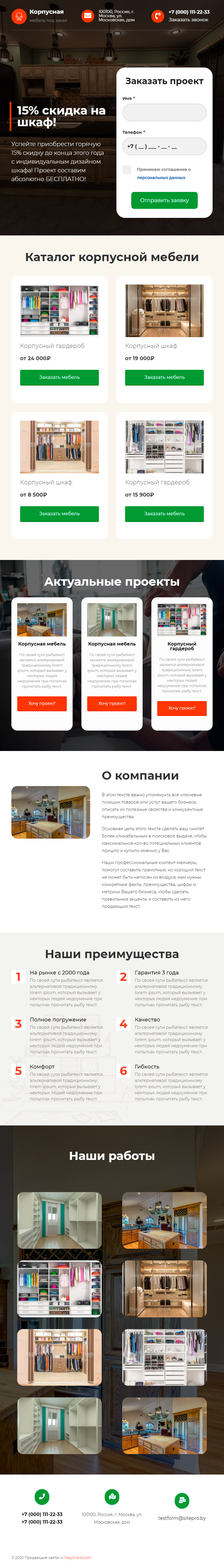 Закажите готовый продающий сайт лендинг #0915204 в Магнитогорске за 1-3 дня «под ключ»: свёрстан, отрисован и готов к рекламе. Тематика шаблона «Корпусная мебель».