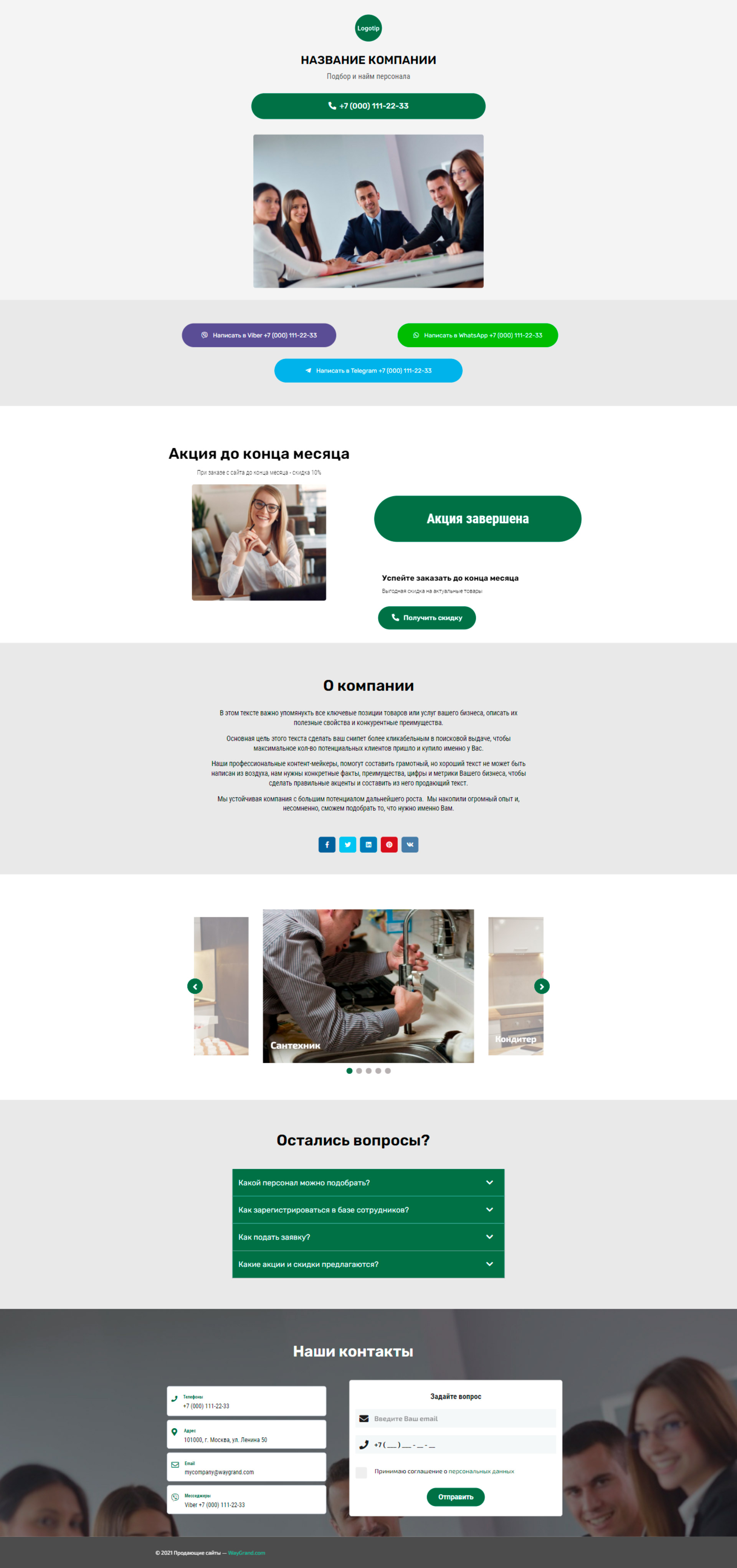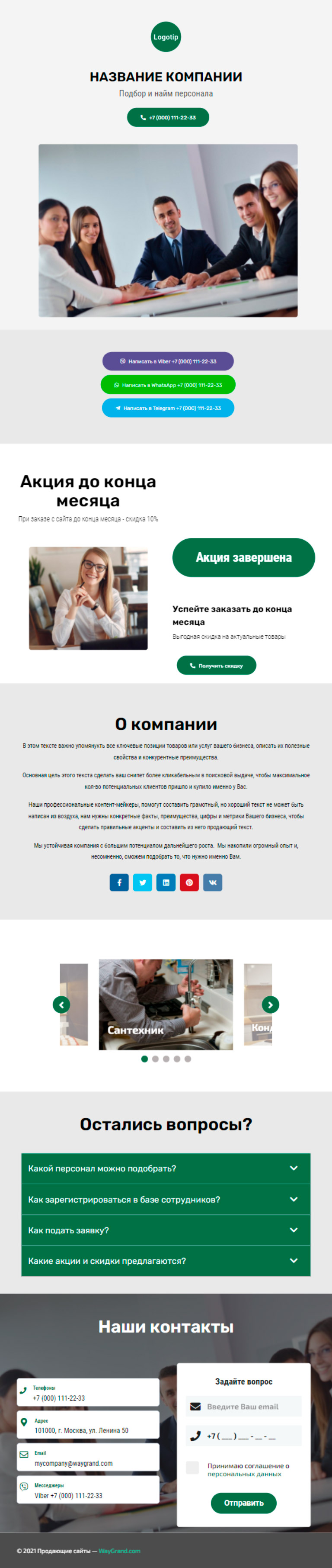 Закажите готовый продающий сайт визитка #1415101 в Магнитогорске за 5-7 дня «под ключ»: свёрстан, отрисован и готов к рекламе. Тематика шаблона «Подбор и найм персонала».