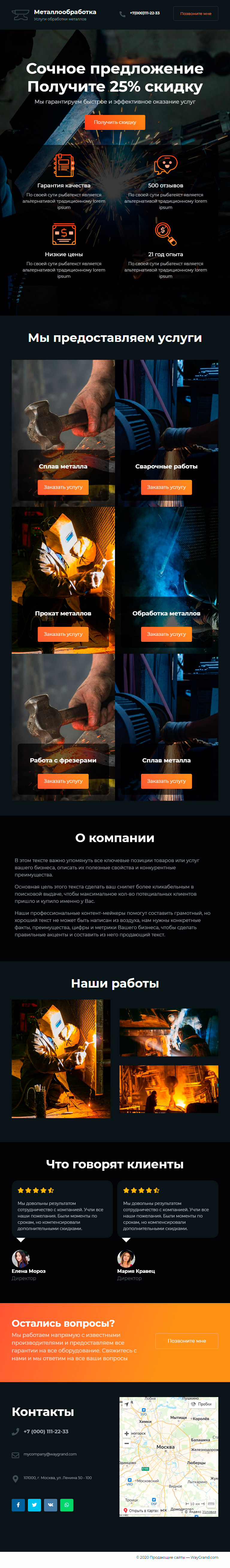Закажите готовый продающий сайт лендинг #1209201 в Магнитогорске за 1-3 дня «под ключ»: свёрстан, отрисован и готов к рекламе. Тематика шаблона «Металлообработка».