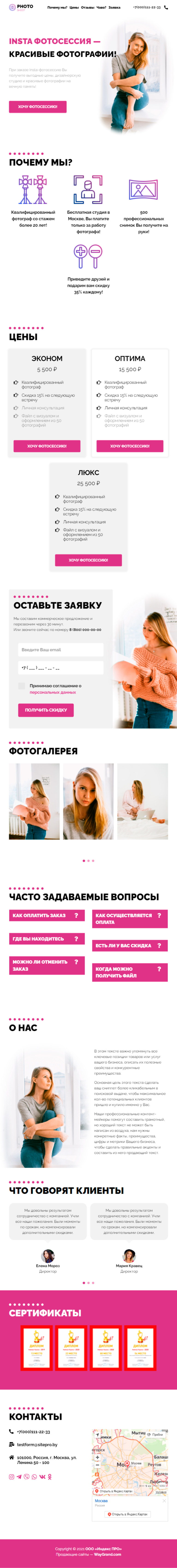 Закажите готовый продающий сайт лендинг #1853201 в Магнитогорске за 1-3 дня «под ключ»: свёрстан, отрисован и готов к рекламе. Тематика шаблона «INSTA фотосессия — лучший подарок».
