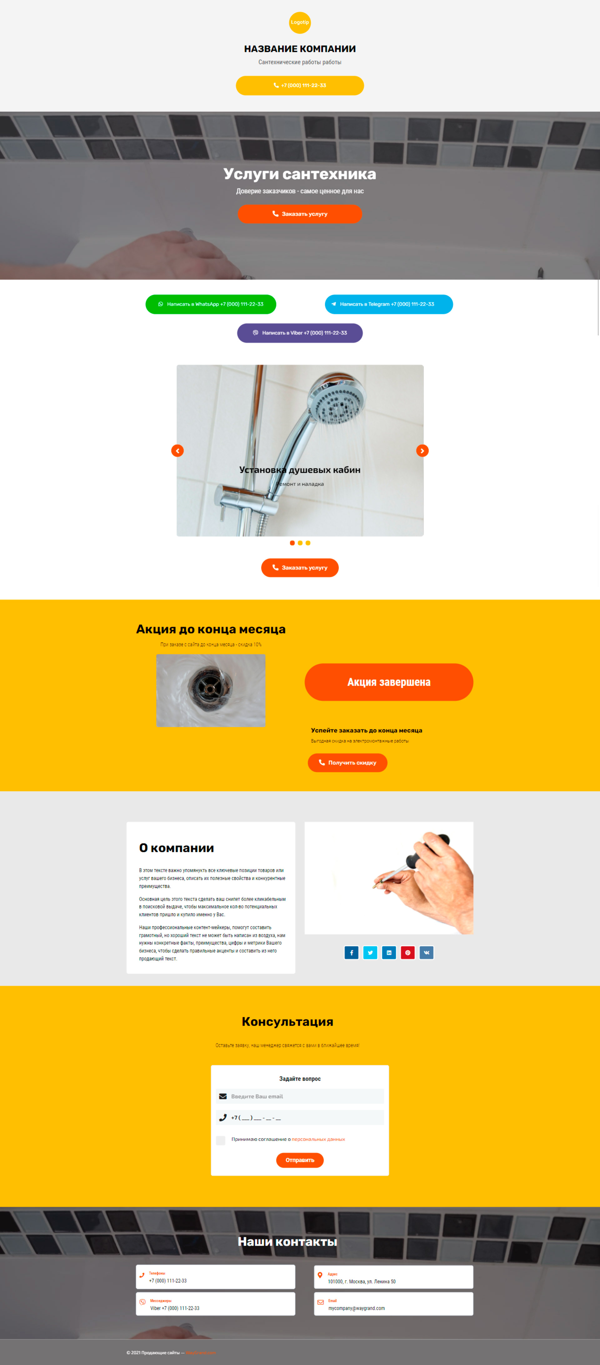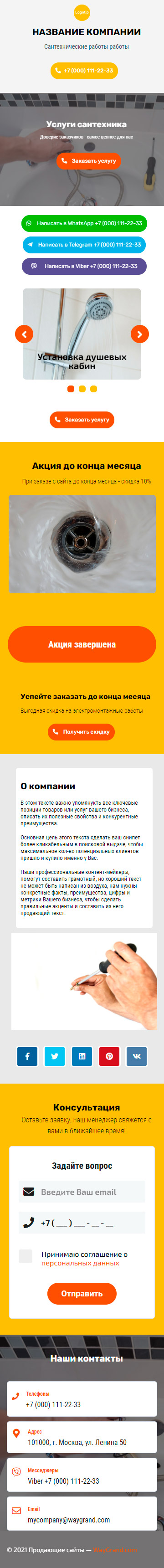 Закажите готовый продающий сайт визитка #2154101 в Магнитогорске за 5-7 дня «под ключ»: свёрстан, отрисован и готов к рекламе. Тематика шаблона «Сантехнические работы».