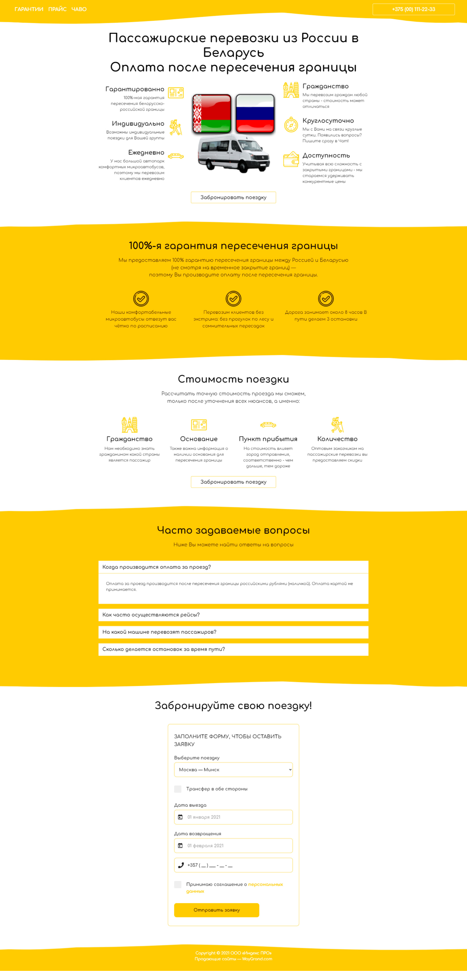 Закажите готовый продающий сайт лендинг #2528203 в Магнитогорске за 1-3 дня «под ключ»: свёрстан, отрисован и готов к рекламе. Тематика шаблона «Пассажирские перевозки из России в Беларусь».