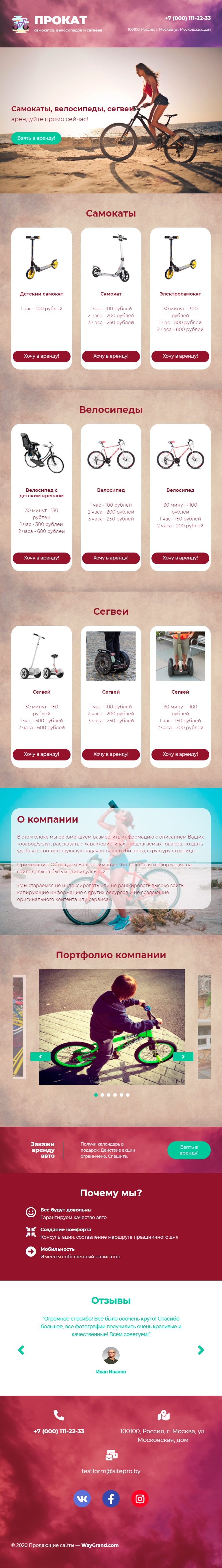 Закажите готовый продающий сайт лендинг #1907201 в Магнитогорске за 1-3 дня «под ключ»: свёрстан, отрисован и готов к рекламе. Тематика шаблона «Прокат самокатов и велосипедов».