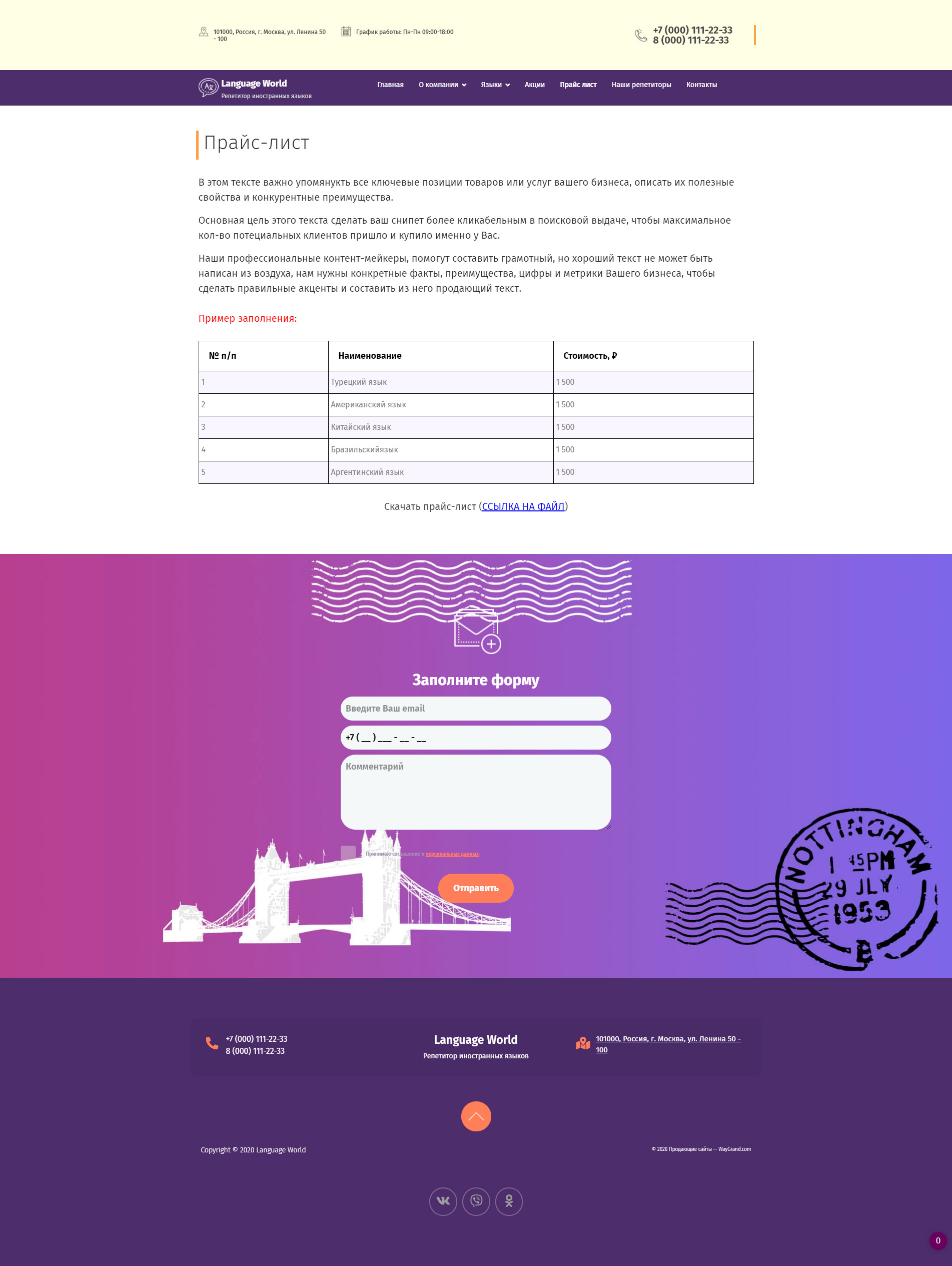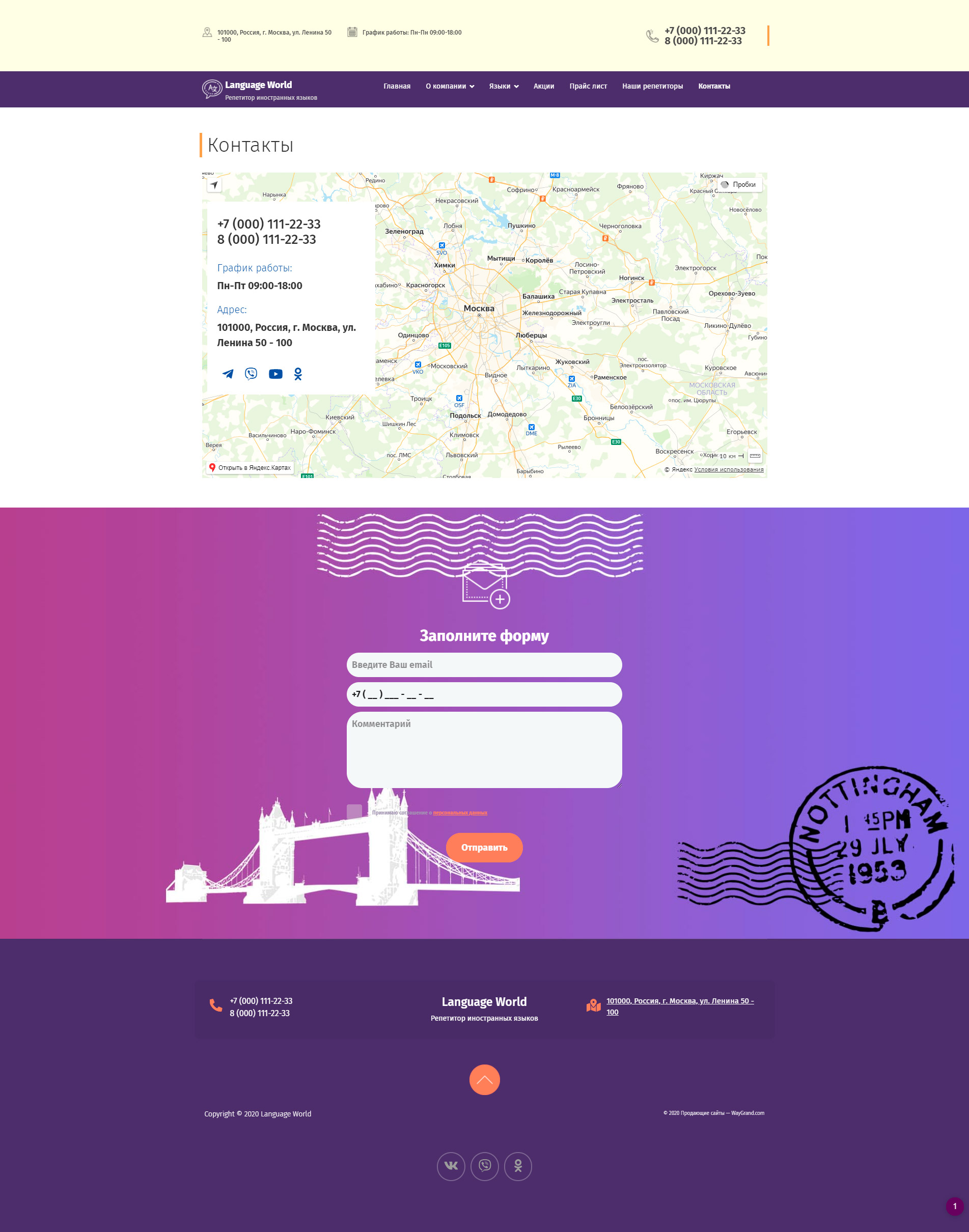Закажите готовый продающий сайт визитка #1448301 в Магнитогорске за 5-7 дня «под ключ»: свёрстан, отрисован и готов к рекламе. Тематика шаблона «Курсы иностранных языков».