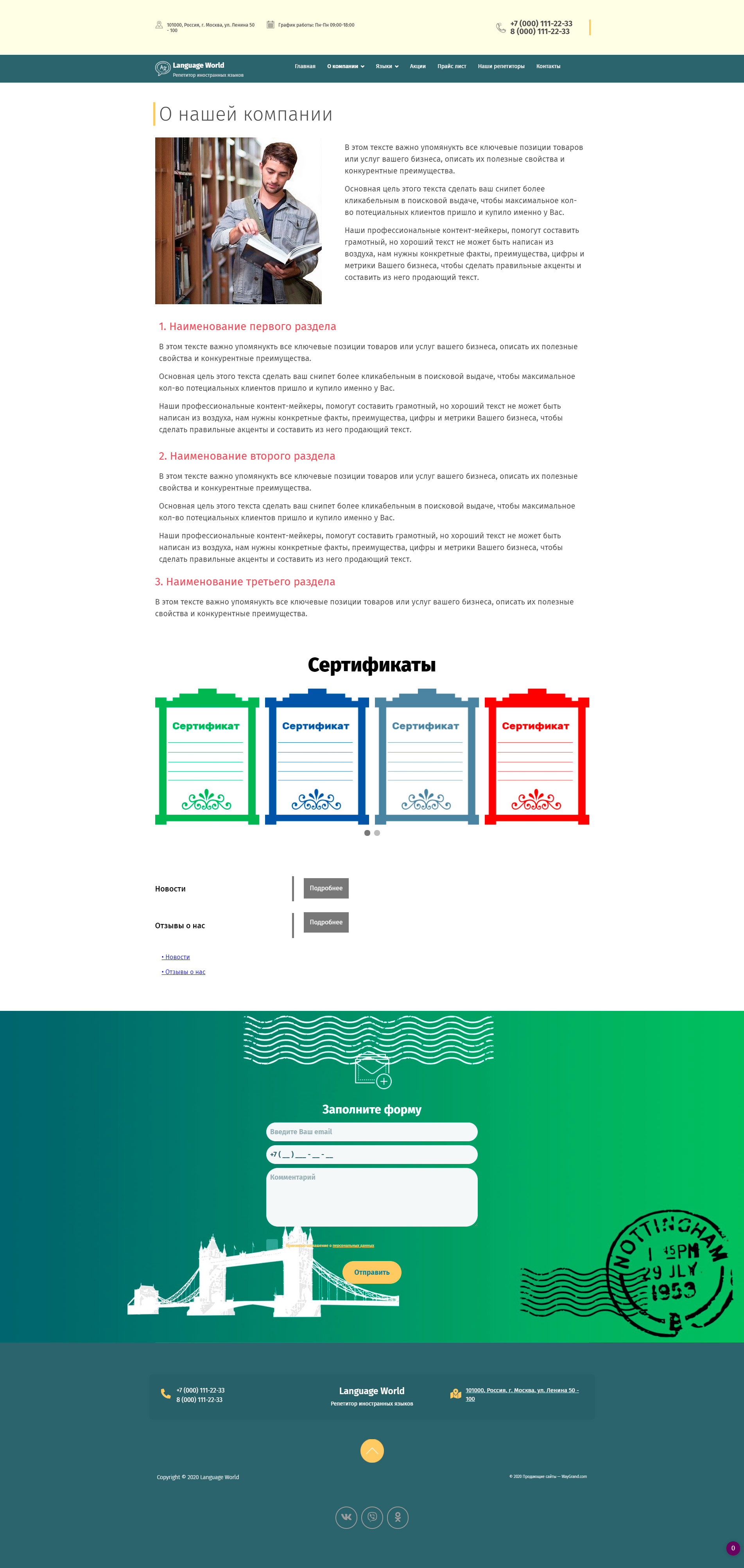 Закажите готовый продающий сайт визитка #1448302 в Магнитогорске за 5-7 дня «под ключ»: свёрстан, отрисован и готов к рекламе. Тематика шаблона «Репетитор иностранных языков».