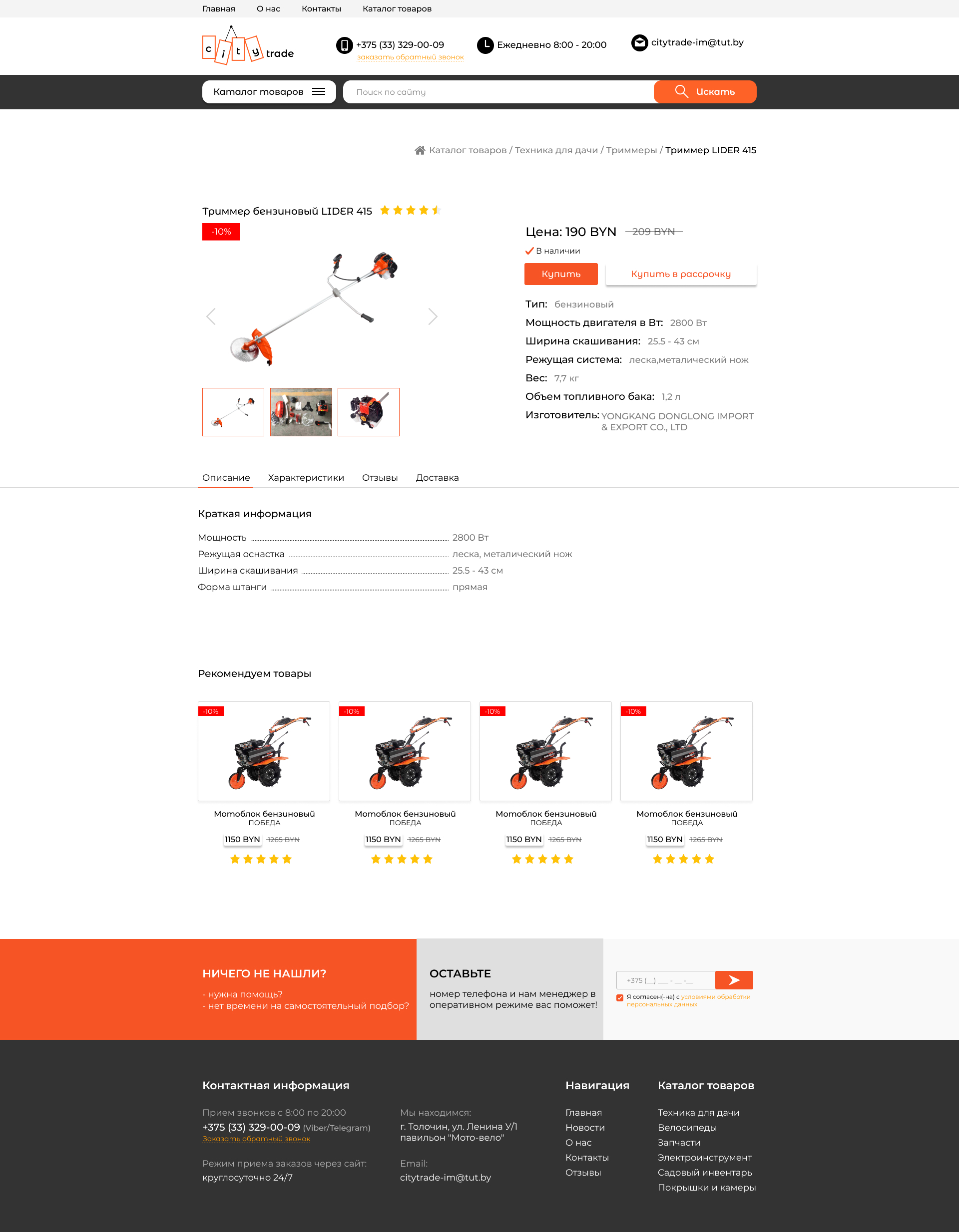 Закажите готовый продающий сайт визитка #281 в Магнитогорске за 5-7 дня «под ключ»: свёрстан, отрисован и готов к рекламе. Тематика шаблона «Розничная продажа садовой техники, велосипедов».