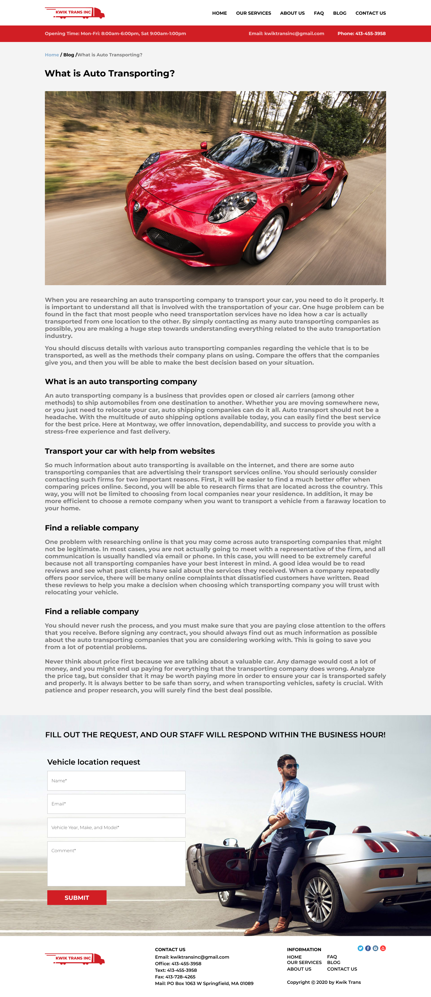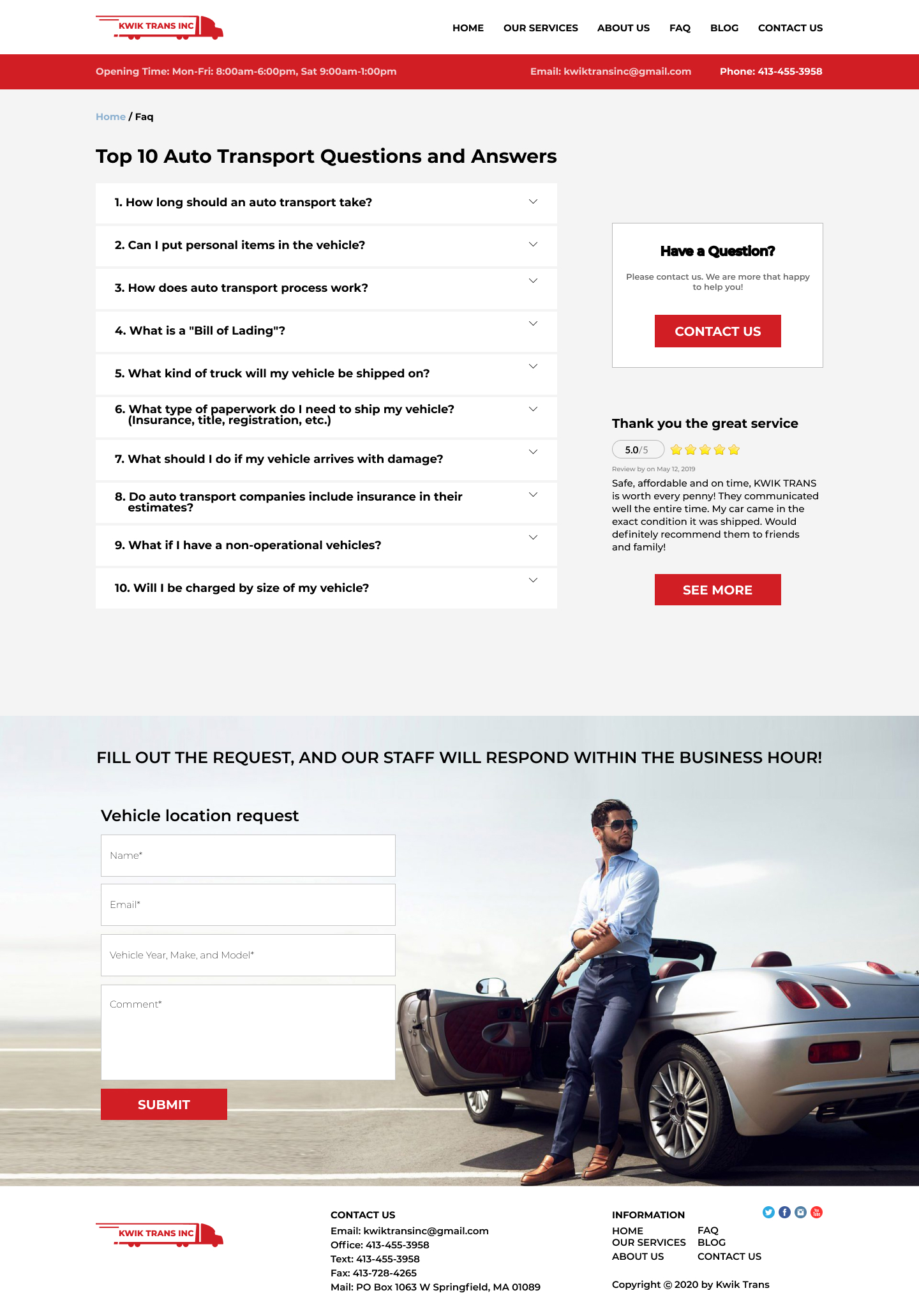 Закажите готовый продающий сайт визитка #223 в Магнитогорске за 5-7 дня «под ключ»: свёрстан, отрисован и готов к рекламе. Тематика шаблона «Safe & Reliable National Auto Transport».